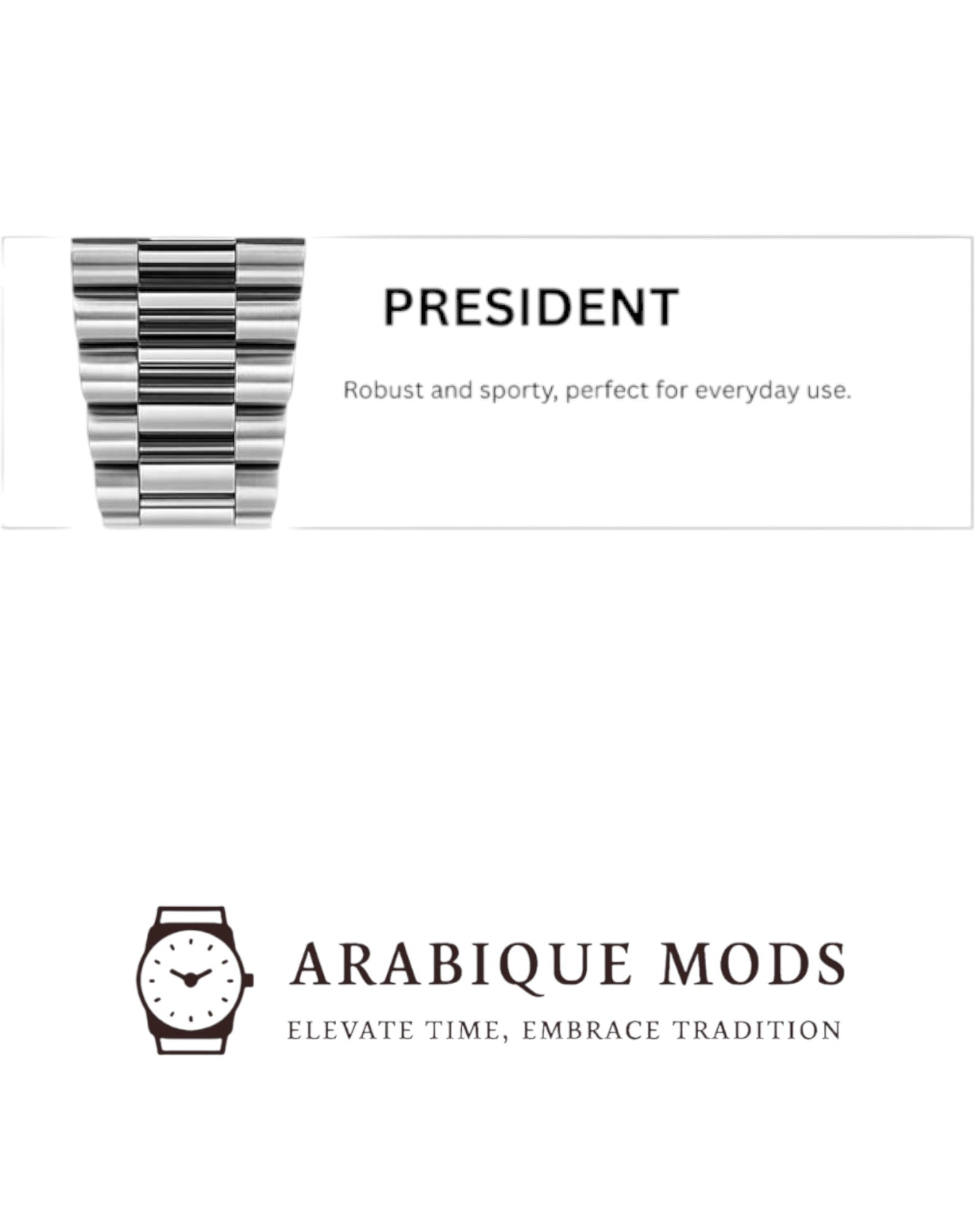 Inspired by the iconic Datejust design and featuring the prestigious Seiko NH35 automatic movement , we present the Seiko Mod Datejust. A high-quality 40 mm watch that combines the perfect balance of excellence and affordability. Available with the Two-tone Presidential bracelet, this timepiece delivers both timeless style and versatile comfort.